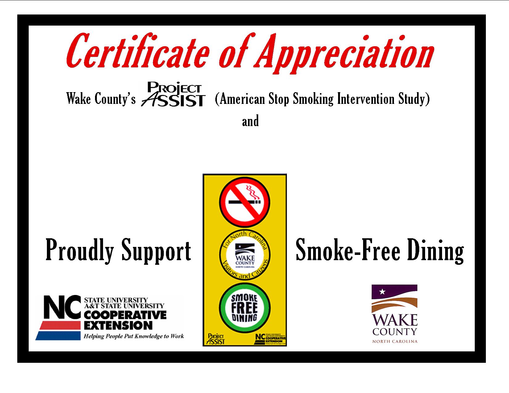 worksites and dining establishments 2) Recognize smoke-free